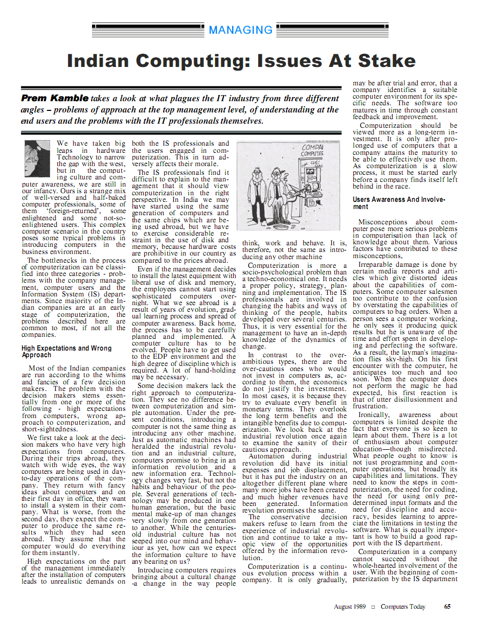 My article in Computers Today. Please wait till page1 displays below... Read Comments Submit Comments Click here for Page2